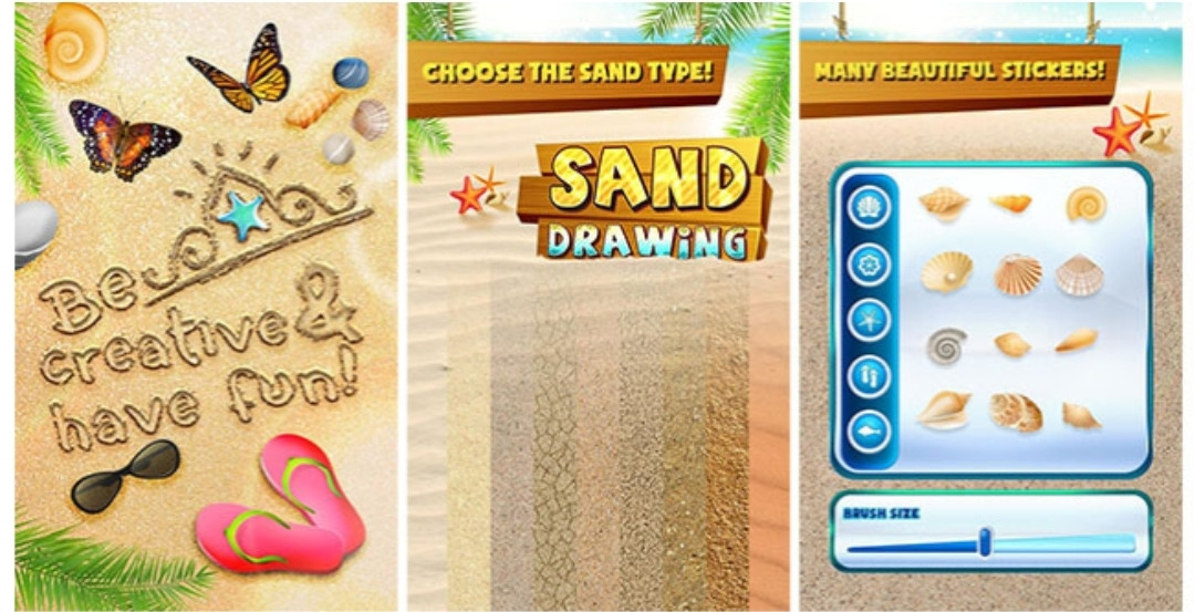 Sand Drawing: Write On Sand is the best sand drawing game free which allows you to draw using your fingers and create masterpieces in the realistic sand! Once the drawing on sand is done, save it to your phone and let the waves wash out the drawing – then, start finger painting again on the canvas of sand!