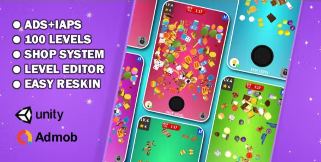 It Includes 100 Levels and a Level Editor for Adding More levels after just a few clicks. This Match 3D Unity Template We made this In detail and easy to use for everyone And Can easily be reskinned into Something New further devs can use this to Make this kit regarding their Own requirements all the Code has been commented properly In this Game Features. ·