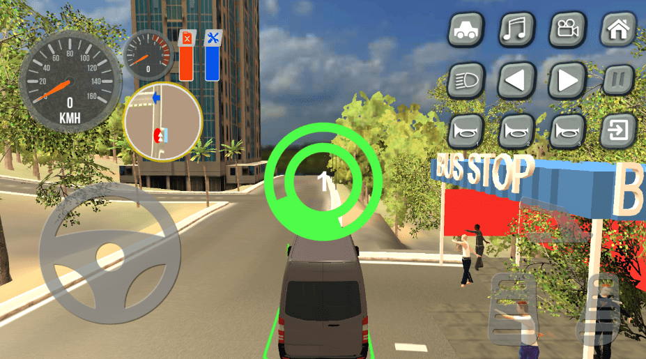 The minibus van game also features a mini GPS system to help you navigate city streets and traffic, so you can keep track of where you are and plot your route on the mini map in the top right corner